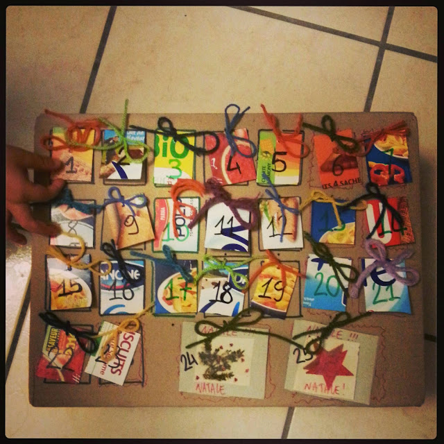 Squabus respirava molto profondamente da giorni e giorni. Sferruzzava e respirava fondo visualizzando una forte energia mistica e natalizia e facendola sua. Squabus ogni anno intorno al solstizio invernale subisce un incantesimo scuro e vischioso e si perde, più ancora del resto dell'anno. Squabus ha deciso che quest'anno invece no e sperava che respirando e visualizzando, visualizzando e sorridendo, si sarebbe sentita abbastanza forte al momento della partenza. Mancavano ancora cinque giorni, da visualizzare anche sul calendario dell'avvento di lana e cartoncino riciclato, quello dei biscotti e della pasta e del pacco degli yogurt quello da sedici. Il primo calendario dell'avvento della sua storia . Cinque giorni intorno all'albero di natale più strano del mondo. Il primo albero di natale della sua storia familiare, quella nuova.